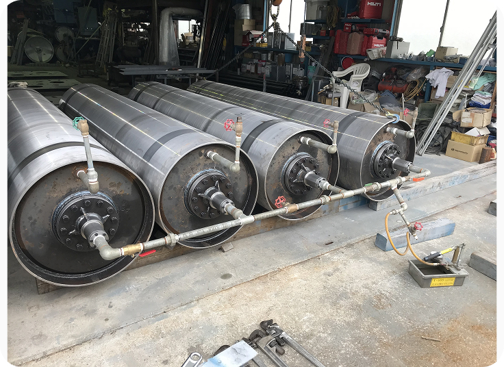 施工実績 works 粗組 1000φX3300L.ロール旋盤加工 第二種圧力容器検査 700φ3300L 1ユニット(2本ロール) 700φX3300L 1ユニット(2本ロール) 1000φ駆動側 1000φ蒸気側 ロールパーツ ロールパーツ ページのTOPに戻る